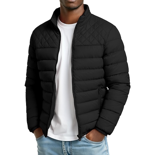 Per uomo Giacca imbottita Giacca di transizione Cerniera completa All'aperto Casuale Regolare Classico Antivento Leggero Inverno Primavera Autunno Tinta unica Nero Rosso Blu marino Blu reale Piumino