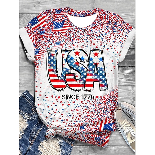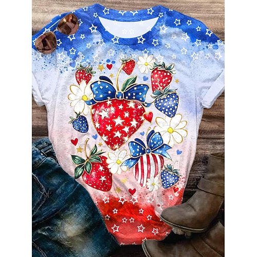 Giorno dell'Indipendenza Americana Per donna Maglietta Grafico Bandiera Americana Vintage Elegante Casual Manica Corta Girocollo Top Regolari Quotidiano Weekend Stampato Blu Bianco Rosso Blu Reale