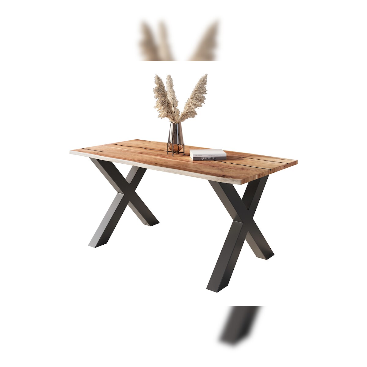 Möbelliebling Baumkantentisch Akazie mit schwarzen Resin-Adern naturfarben 180 x 90 cm X-Gestell schwarz POLLY