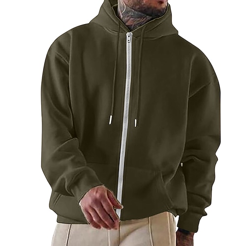 Per uomo Felpa con cappuccio Felpa con cappuccio a zip intera Felpa con cappuccio in pile Rosso bordeaux Nero Verde chiaro Rosa Verde militare Con Cappuccio Semplice Cerniera Sport Outdoor Casuale