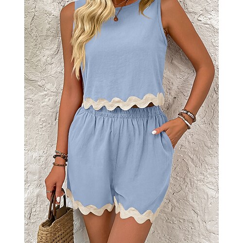 Per donna Attivo Streetwear Set di Pantaloncini Bolero Top Senza Maniche Girocollo Blocco di colori Pizzo Vacanza Quotidiano Rosa Verde militare Azzurro cielo Estate Vestibilità regolare