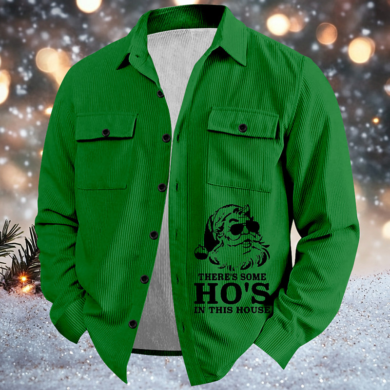 Christmas Men's Santa Claus Corduroy Shirt Shirt Jacket Long Sleeve Vintage Casual Outdoor Event / Party Dailywear Fall Winter Turndown Collared Shirts Button 3D Print 2 Pockets 1pc Violet Black