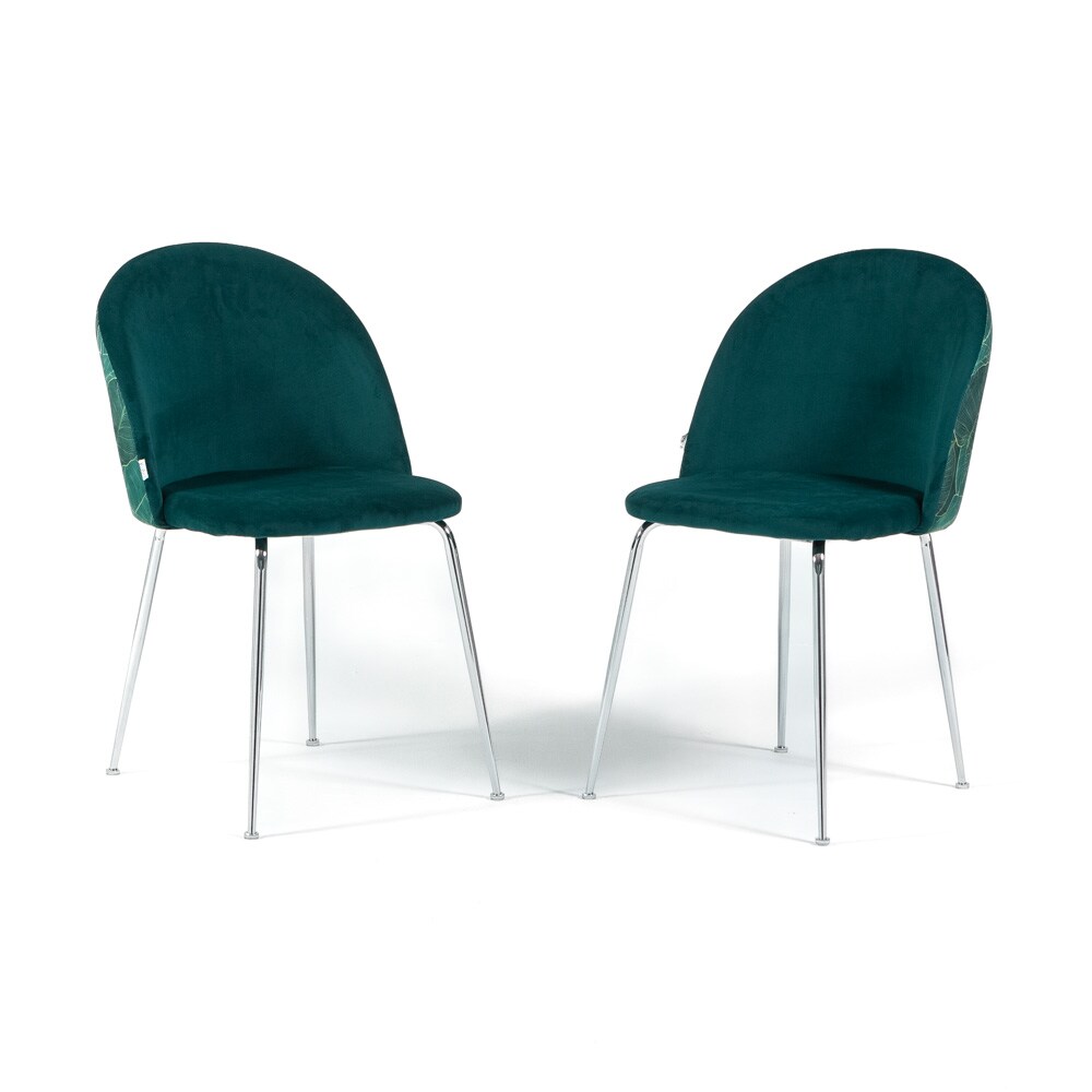 RATTATAN Set aus 2 Innenstühlen aus dekorativem Samt mit Metallbeinen, elegantes Design für Küche, Esszimmer, Bar und Restaurant – Sara – Petrol/Silber
