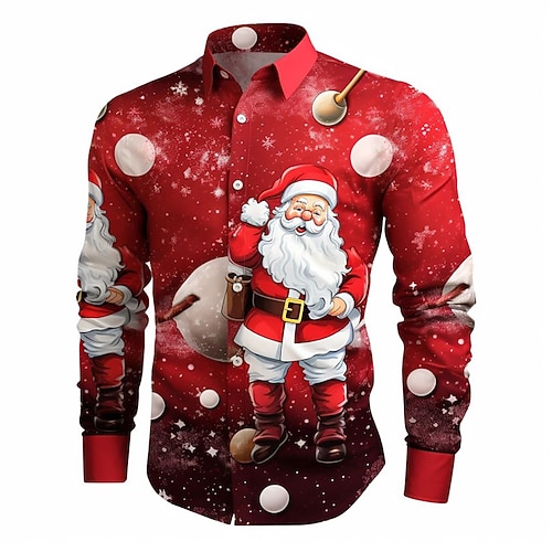 Christmas Men's Santa Claus Smile Face Neon Glow Shirt Button Up Shirt Long Sleeve Funny Outdoor Holiday Spring Fall Turndown 3D Print Collared Shirts Red 1 Red 3 Red Red 2