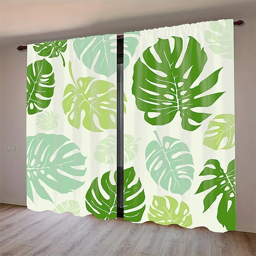 2 tende con stampa floreale e vegetale, tende in poliestere con passante per asta, tende con stampa botanica verde per soggiorno, camera da letto, cucina, dormitorio, decorazione per la casa.