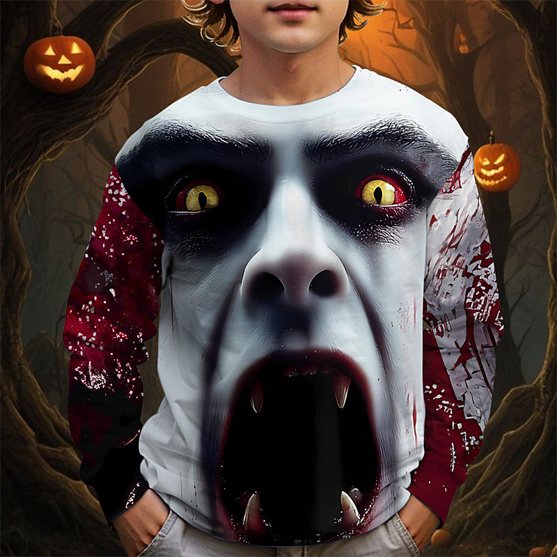 Halloween Boys' 3D Graphic T shirt Tee Long Sleeve Spring Fall Fashion Basic Kids 4-12 Years Crew Neck Outdoor Casual Daily Regular Fit