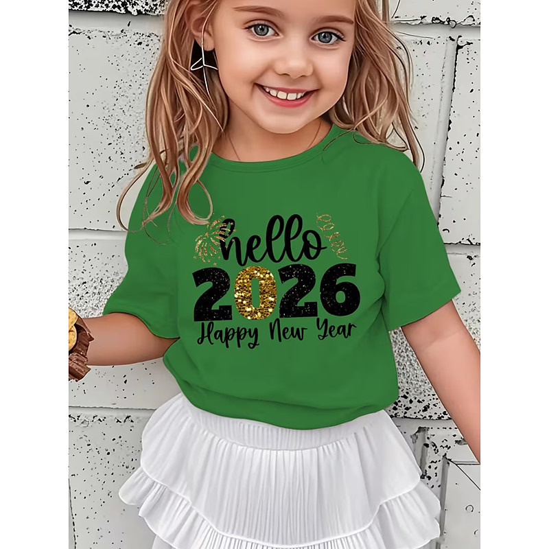 Girls' 2026 New Year'S Party 3D Graphic Letter T shirt Tee Short Sleeve 3D Print Summer Spring Sports Fashion Streetwear Kids 4-12 Years Crew Neck Outdoor Casual Daily Regular Fit