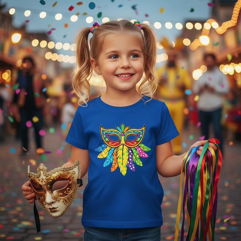 100% Cotton Carnival Kids Girls' Blue Black White Graphic Mask Mardi Gras T shirt Tee Crew Neck Short Sleeve Vacation Sports Outdoor Dailywear Tropical Sports Casual Print Summer