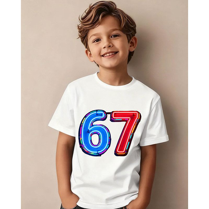 Cotton Kids Boys' Black White Graphic Funny Slang 67 T shirt Blouse Crew Neck Short Sleeve Outdoor Dailywear Fashion Streetwear Designer Printing Summer