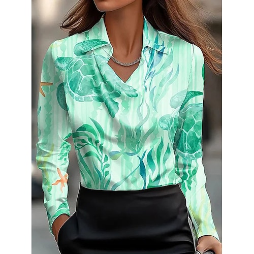 Per donna Camicia Floreale Grafico Elegante Casual Manica Lunga Scollo a Cascata Top Regolari Lavoro Abbigliamento da sera Quotidiano Arricciato Drappeggiato Giallo Verde smeraldo Verde Beige Estate