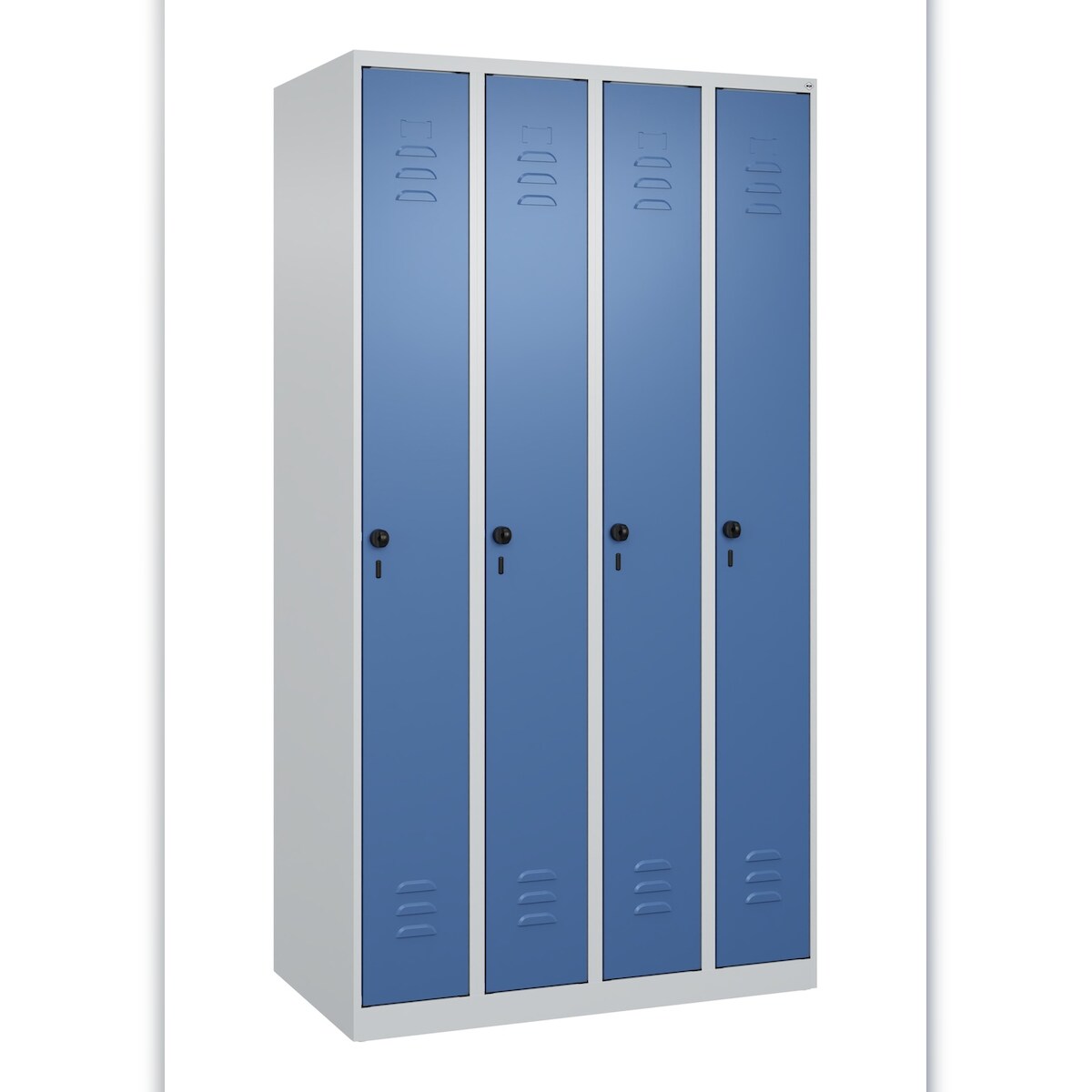 C+P Spind Classic PLUS, 4 Abteile, HxBxT 185x100x50cm, Sicherheitsdrehriegel, Hellgrau/Fernblau von PROREGAL