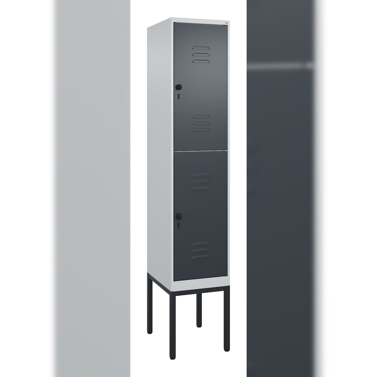 C+P Spind Classic PLUS, Gestell, 2 Abteile, HxBxT 212x40x50cm, Sicherheitsdrehriegel, Hellgrau/Anthrazit von PROREGAL