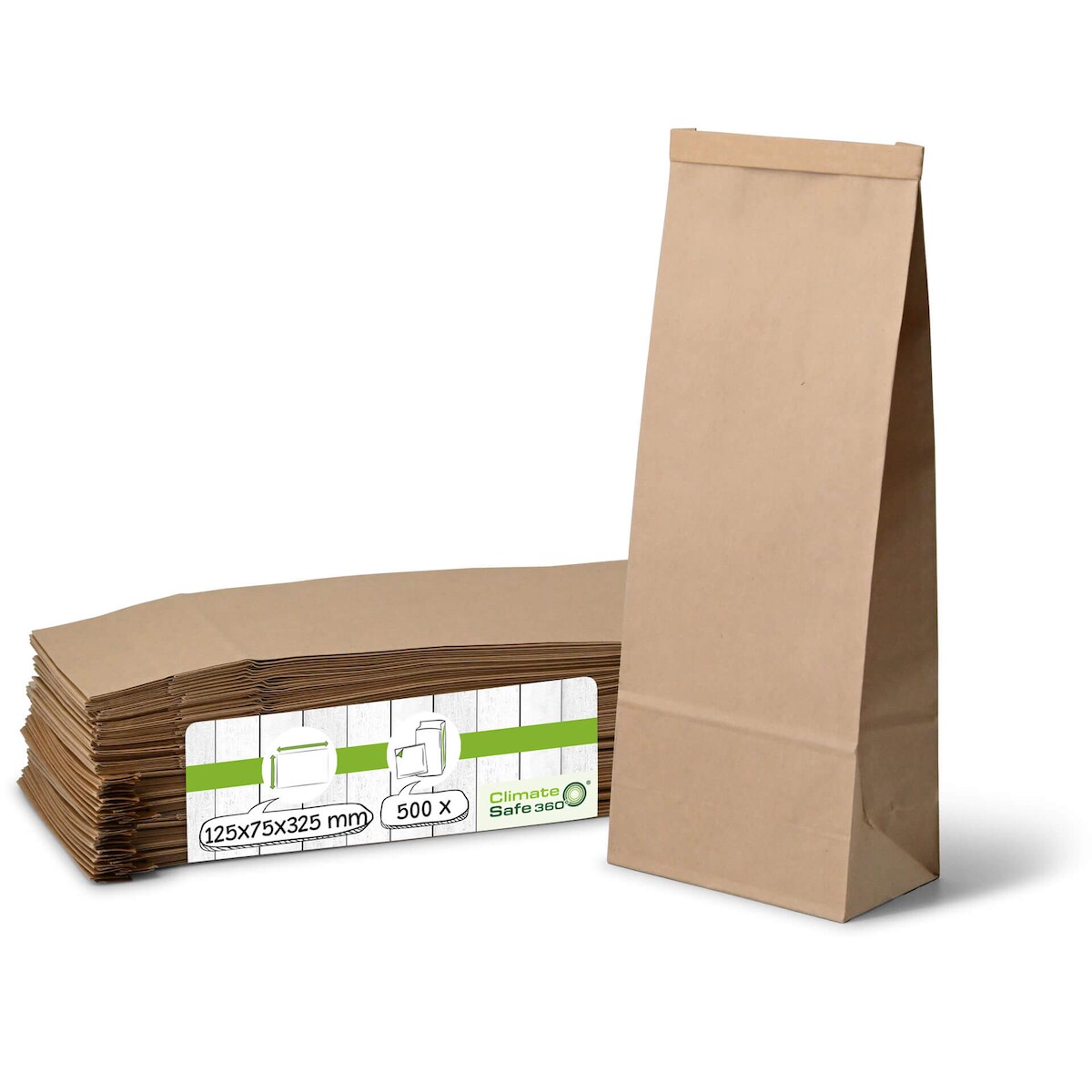 greenbox - Blockbeutel L, 12,5 x 7,5 x 32,5 cm, PP-Folie, braun, Clipband, Kraftpapier, 500 St.