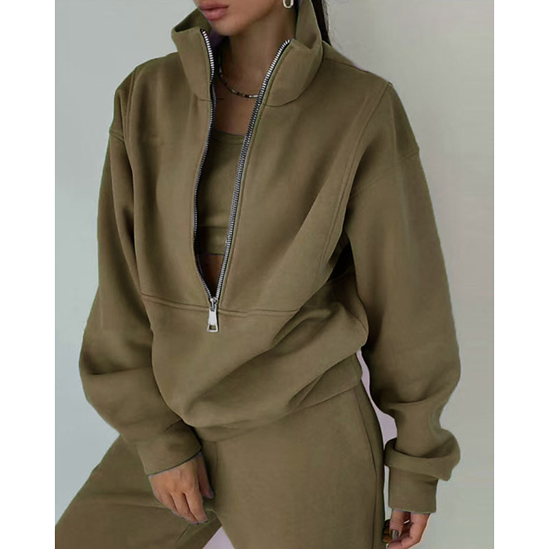 Women's Sweatpants Fleece Tracksuit Track Top Zipper 2 Piece Solid Colored Jacket and Sweatpants Clothing Suit Fall Forest Green Navy Gym Sports Running Thermal Warm Windproof Long Sleeve Sport