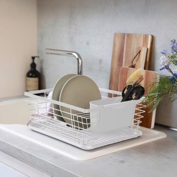Diskställ med bestickkorg, Metall, DRIP RACK, 36 x 30 x H 15 cm, Vit