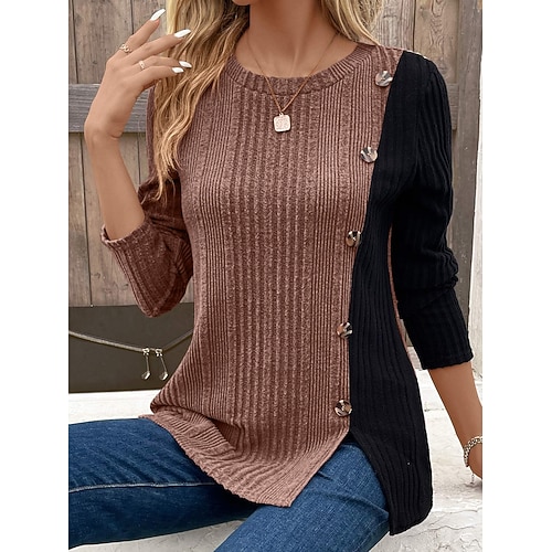 Per donna Blusa Blocco di colori Elegante Casual Manica Lunga Girocollo Top Regolari Quotidiano Arricciato Bottoni Verde chiaro Vino Verde militare Marrone Cachi Primavera Autunno Inverno