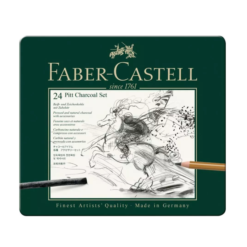 FABER-CASTELL Coffret de Fusains Pitt en Boîte Métal - 24 Pièces
