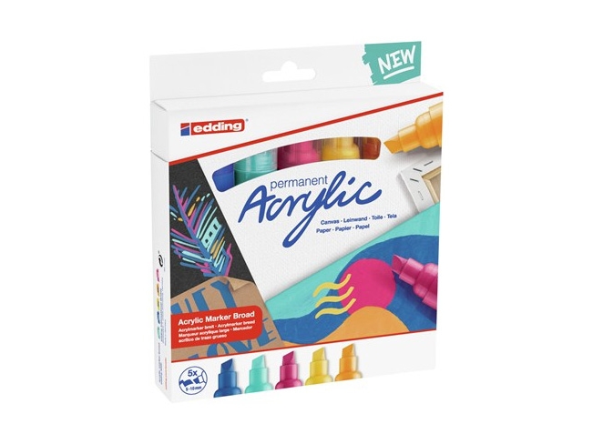 Edding 5000 Acrylic Marker Broad, Blå, Oransje, Lilla, Turkis, Gul, Mejselspiss, Blå, Oransje, Lilla, Turkis, Gul, Ekstra fet, 5 mm, 1 cm