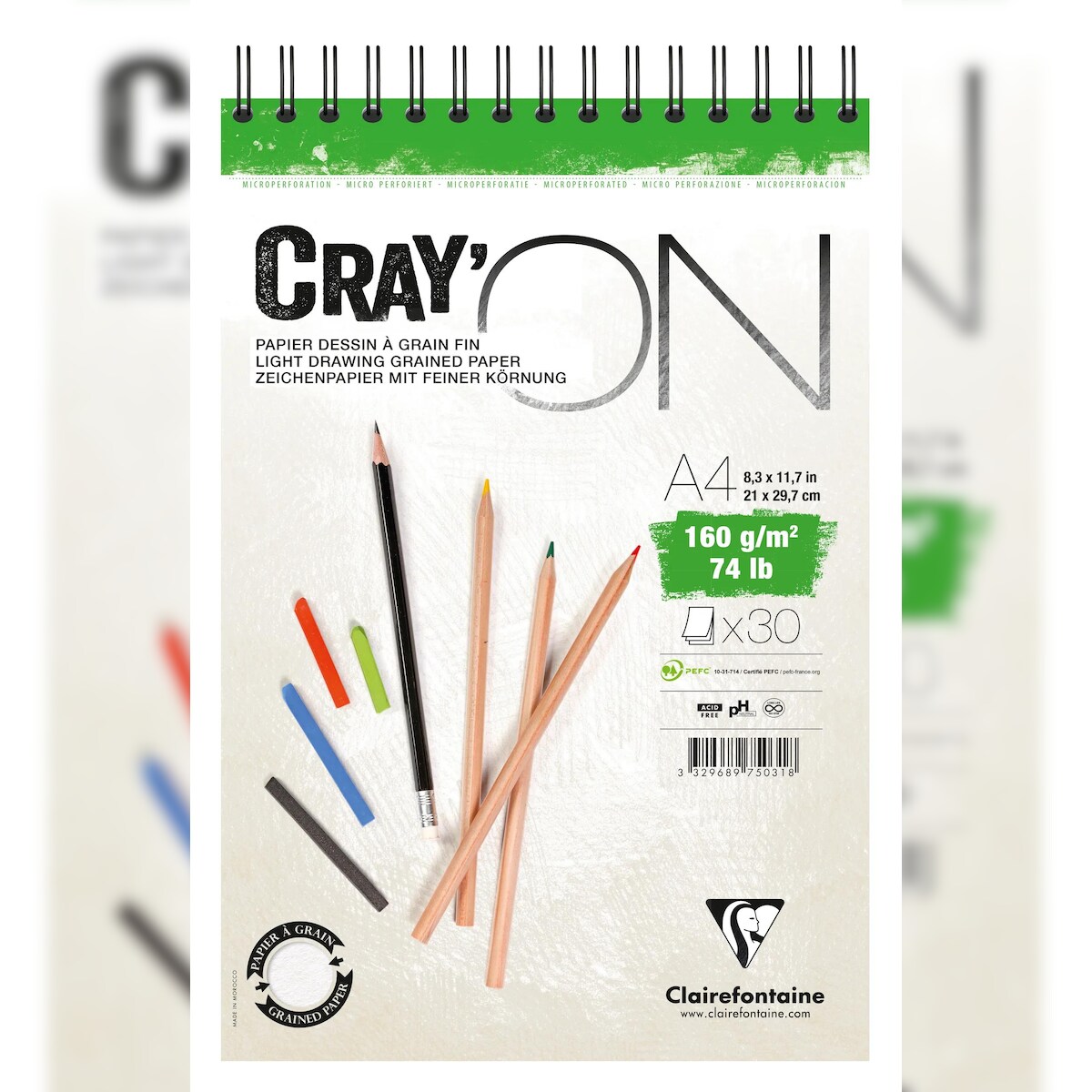 Clairefontaine 5x Cray'ON, Spiralblock A4, 30 Blatt 160g - 975031C