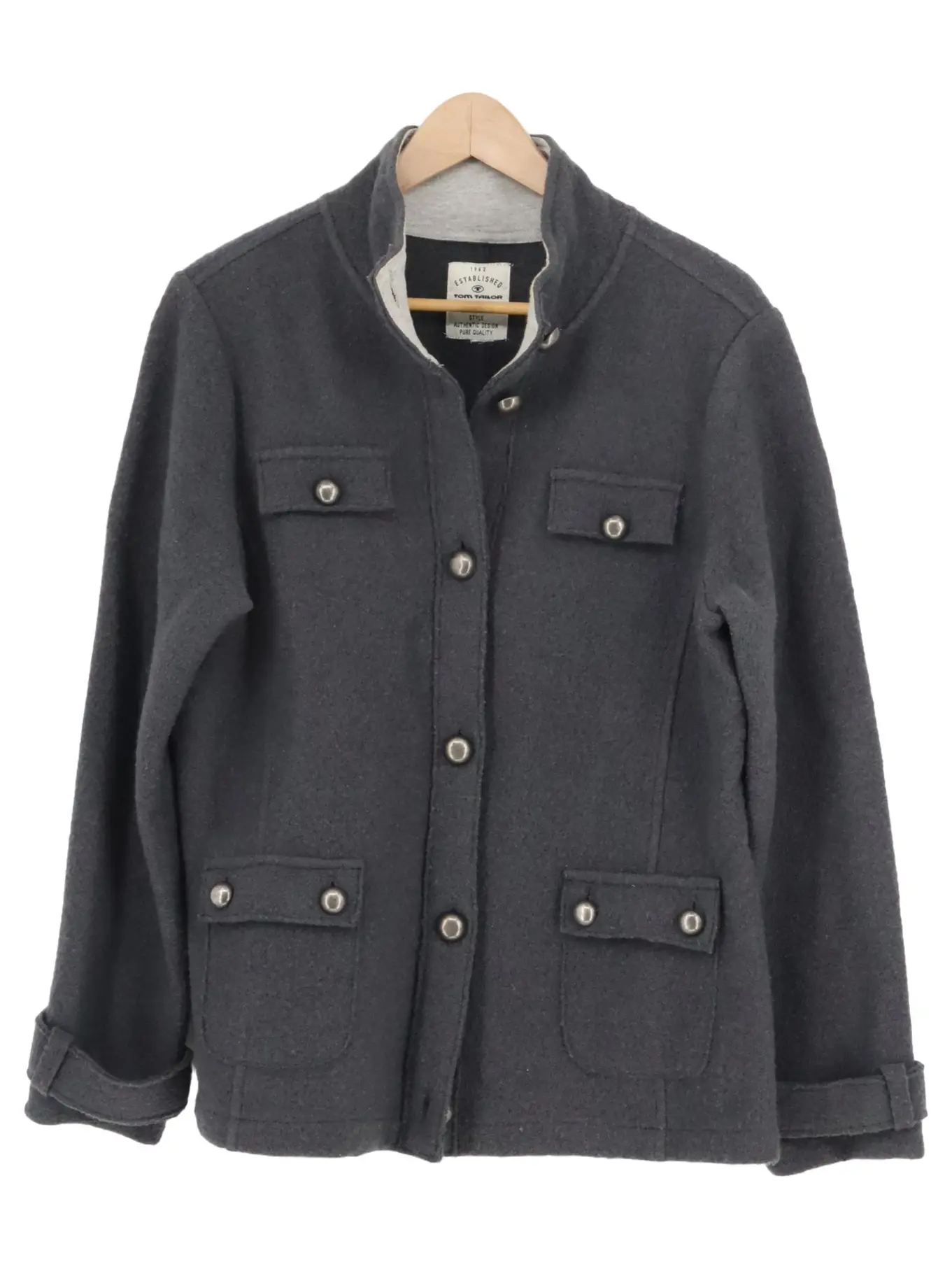 TOM TAILOR Winterjacke Damen Gr. 42 Grau Reißverschluss Wolle