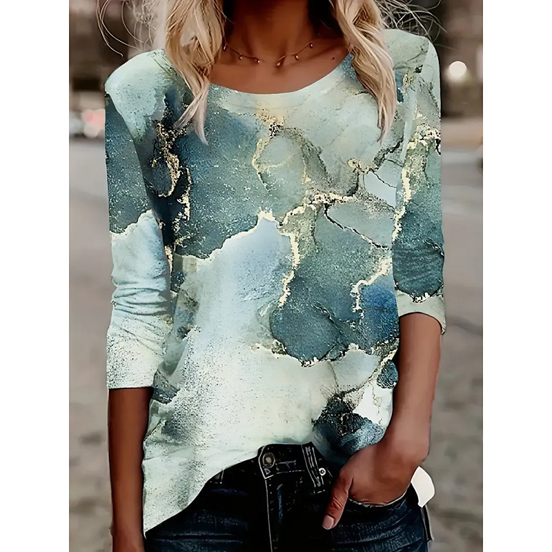 Women's T shirt Crew Neck Long Sleeve Tunic Casual Print Regular Tops Daily Pink Blue Purple Spring Fall