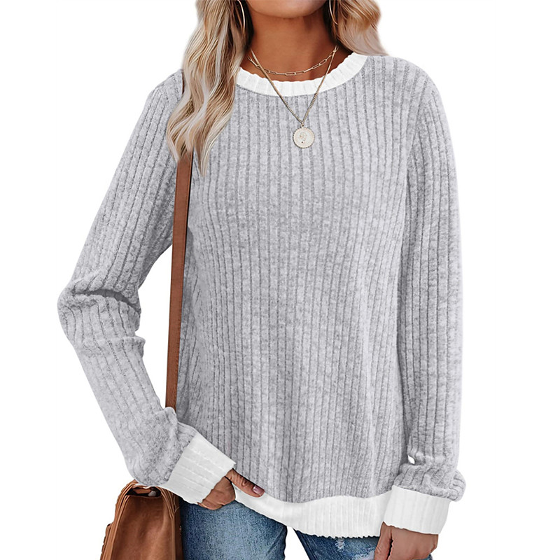 Women's Sweater Casual Soft Pure Color Ribbed Crew Neck Knitted Long Sleeve Regular Tops Knit Outdoor Daily Weekend Orange Khaki Fall Winter