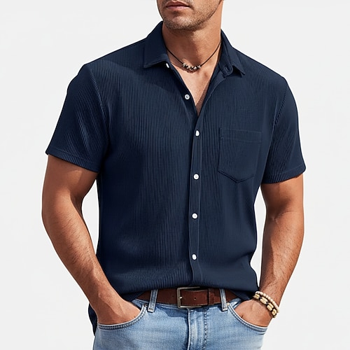 Per uomo Camicia Camicia casual Camicia di Velluto a Coste Camicia con Bottoni Nero Bianco Borgogna Blu marino Verde militare Manica Corta Semplice Colletto a Camicia Casuale Quotidiano Tasca Frontale