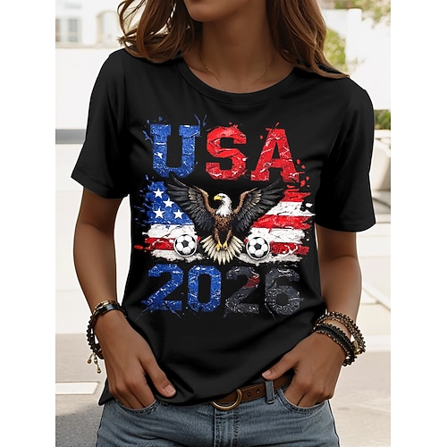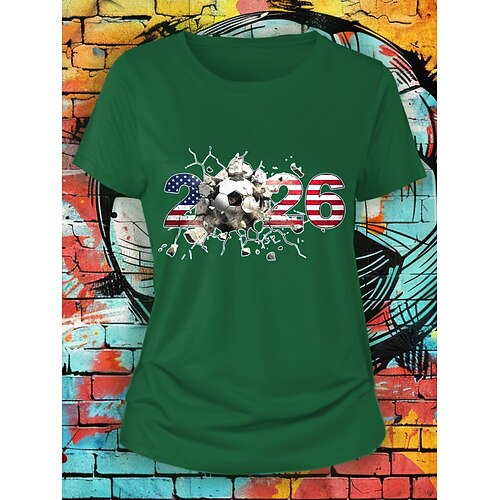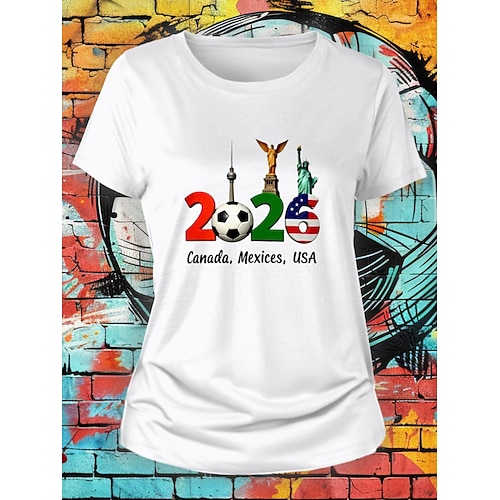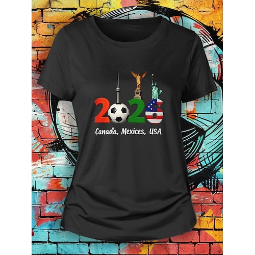 Maglietta da Donna World Soccer Match 2026 Stampa Grafica Lettera Elegante Classica Casual Maniche Corte Collo Tondo Regular Top Giornalieri Blu Nero Bianco Rosso Verde Estate Primavera