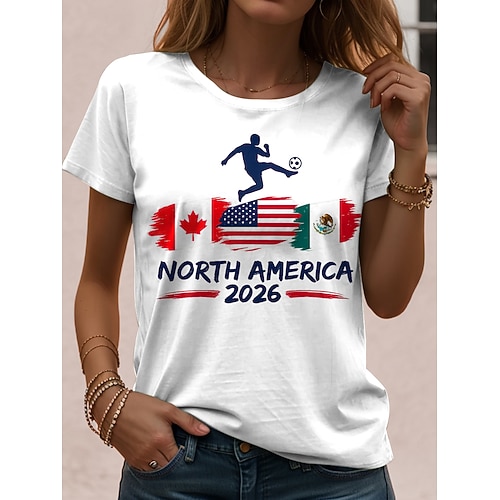 Maglietta da Donna World Soccer Match 2026 Stampa Grafica Elegante Classica Casual Maniche Corte Collo Tondo Regular Top Sportivi Giornalieri Blu Nero Bianco Estate Primavera