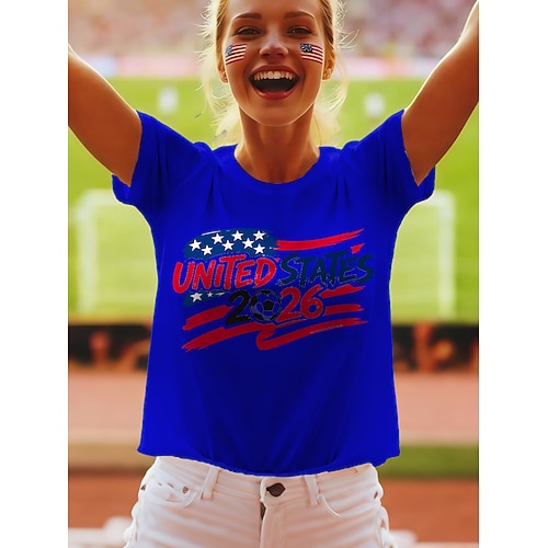 Maglietta da Donna World Soccer Match 2026 Stampa Grafica Lettera Elegante Classica Casual Maniche Corte Collo Tondo Regular Top Giornalieri Blu Nero Bianco Rosso Estate Primavera