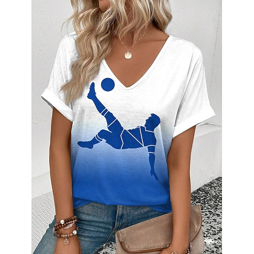 Maglietta da Donna World Soccer Match 2026 Stampa Ombre Grafica Blocco di Colore Vintage Elegante Classica Maniche Corte Collo a V Regular Top Giornalieri Weekend Vacanza Blu Bianco-Blu Bianco Estate