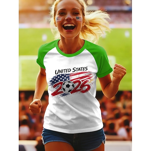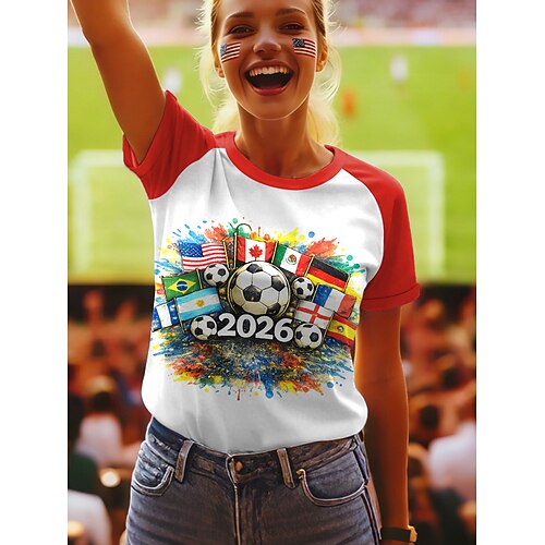 Maglietta da Donna World Soccer Match 2026 Stampa Grafica Lettera Elegante Classica Casual Maniche Corte Collo Tondo Regular Top Giornalieri Blu Rosso Verde Estate Primavera
