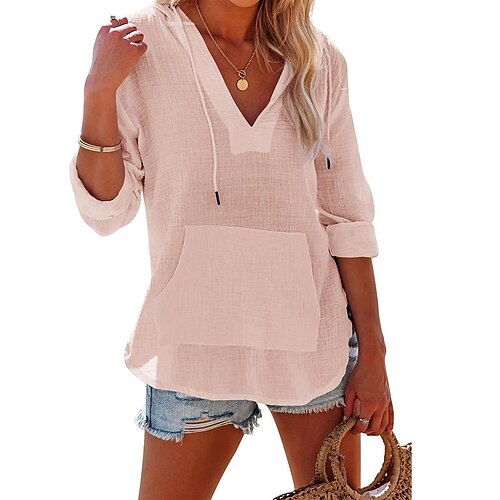 Per donna Camicia Blusa Semplice Moderno Casual Manica 3/4 Scollo a V Top Regolari Quotidiano Uscire Tasca Orlo asimmetrico Giallo Azzurro cielo Viola Cachi Autunno