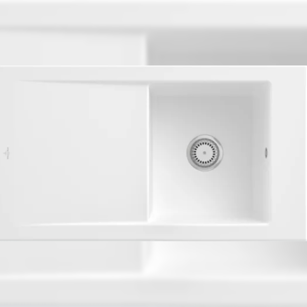 Villeroy & Boch Villeroy&Boch Spülbecken mit Abtropffläche links, Timeline 50 Stone White 900x510mm, inkl. Ablaufgarnitur mit Handbetätigung