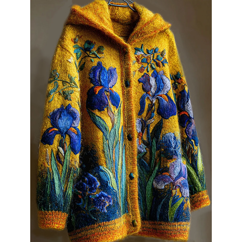 Women's Cardigan Daily Casual Floral Graphic Ribbed Hooded Patchwork Pocket Floral Long Sleeve Long Tops Knit Outdoor Weekend Yellow Fall Winter