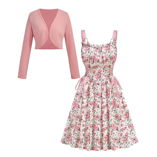 Elegante Anni 1950 Midi Vestito Cardigan Senza maniche Floreale Linea ad A Girocollo Costume Per donna Feste Abbigliamento Quotidiano Casual Quotidiano Adulti Top Vestito Primavera Estate