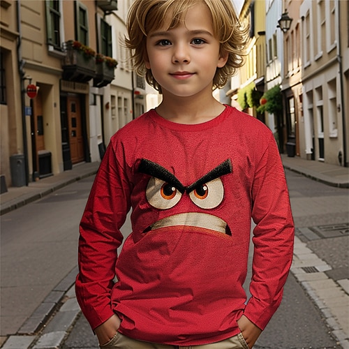 Ragazzi 3D Cartoni animati Maglietta Manica Lunga Primavera Autunno Moda Essenziale Bambini 4-12 Anni Girocollo All'aperto Casuale Quotidiano Vestibilità regolare