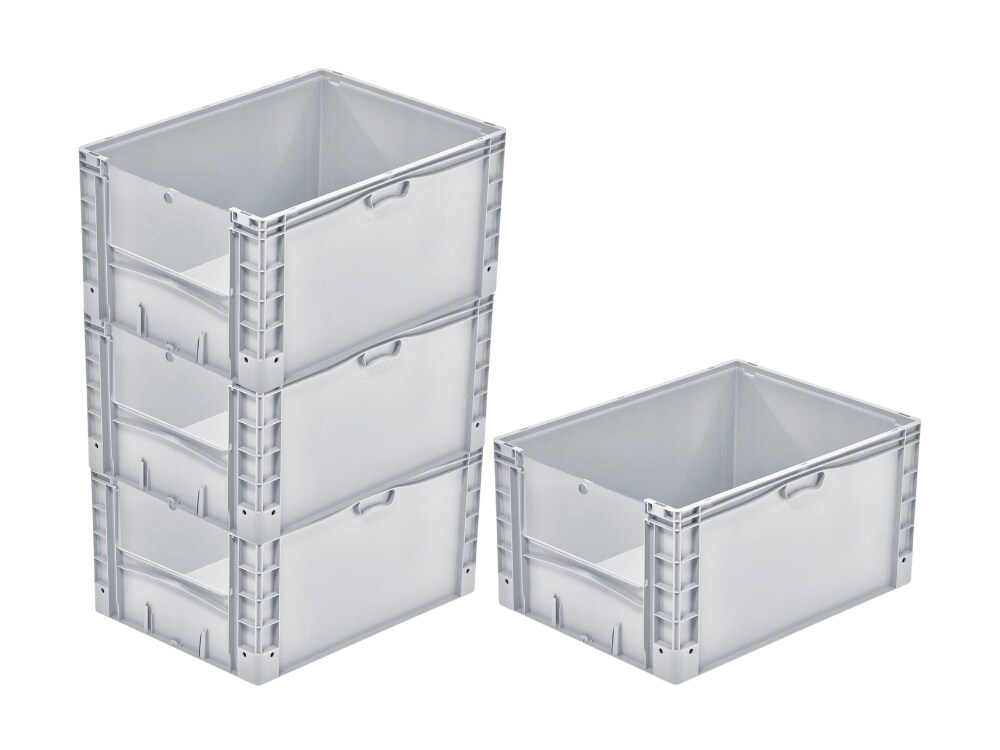 PROREGAL 4x Euro-Norm Großbehälter Insight Cover | HxBxT 42x60x80cm | 168 Liter | Grau | Eurobehälter, Transportbox, Transportbehälter