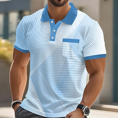 Herren Geometrisch Linie Polo Kurzarm Polo-Shirts Hemden mit Kragen Business-Casual Outdoor Athleisure Alltagskleidung Tasche 3D-Druck Sommer Weiß Rote Blau