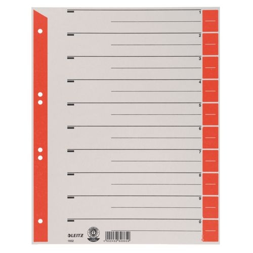 Leitz 1 bis 10 Register DIN A4 Überbreite Rot 1-teilig Pappkarton 6 Löcher 1652 100 Stück
