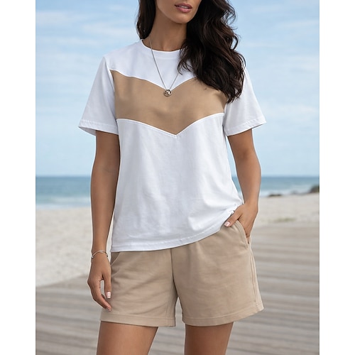 Per donna Set di biancheria in cotone Set di Pantaloni Mezza Manica Girocollo Floreale Elegante Moda Streetwear Casuale Quotidiano All'aperto Nero Bianco Rosa Primavera Estate Vestibilità comoda
