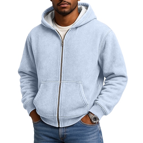 Per uomo Felpa con cappuccio Felpa con cappuccio a zip intera Felpa con cappuccio in pile Felpa con cappuccio foderata in pile Blu Nero Rosa Rosso Blu marino Con Cappuccio Semplice Cerniera Sport