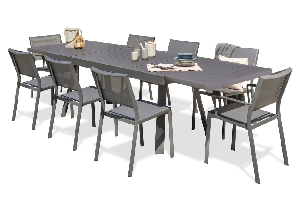 Tavolo da giardino allungabile 8 posti con 8 sedie in alluminio