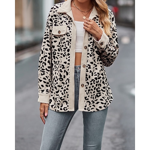 Per donna Camicia Blusa Leopardo Attivo Elegante Manica Lunga Colletto a Camicia Top Regolari Quotidiano Ferie Patchwork Bottoni Blu Rosa Verde militare Marrone Albicocca Autunno Inverno