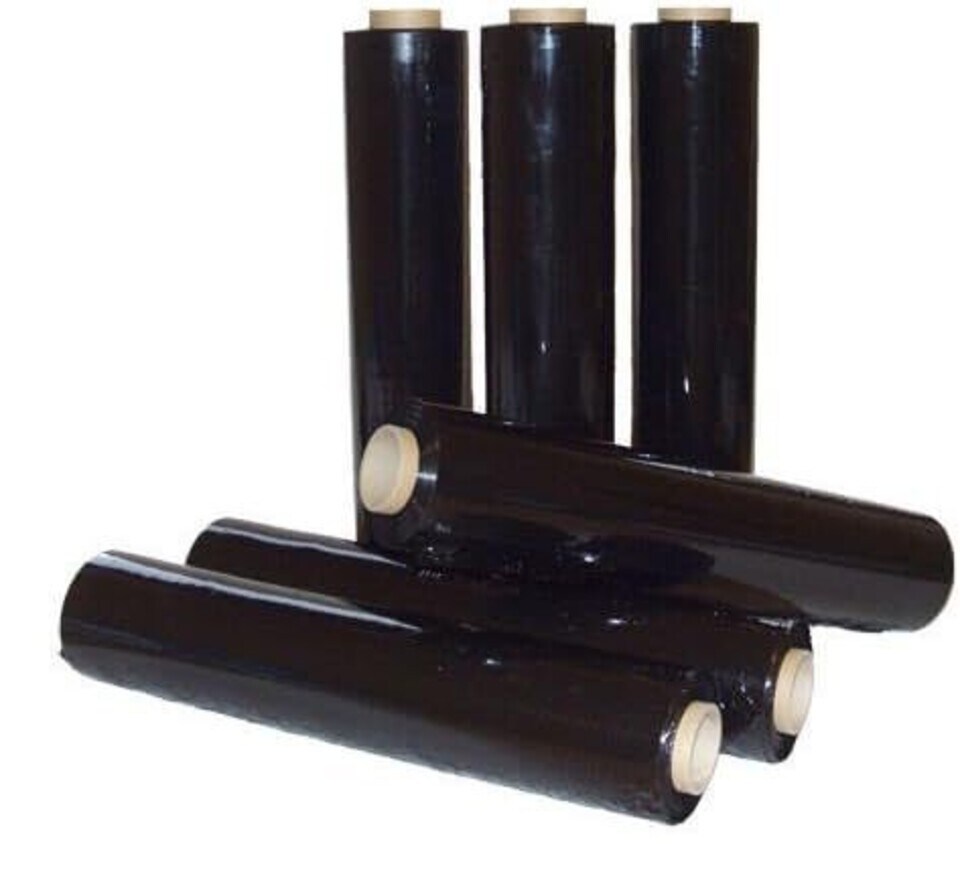 6x Stretchfolie 23my Schwarz – 500 mm – 1,5 kg/Rolle – Verpackungsfolie – Reißfest & blickdicht– Paletten Stretchfolie