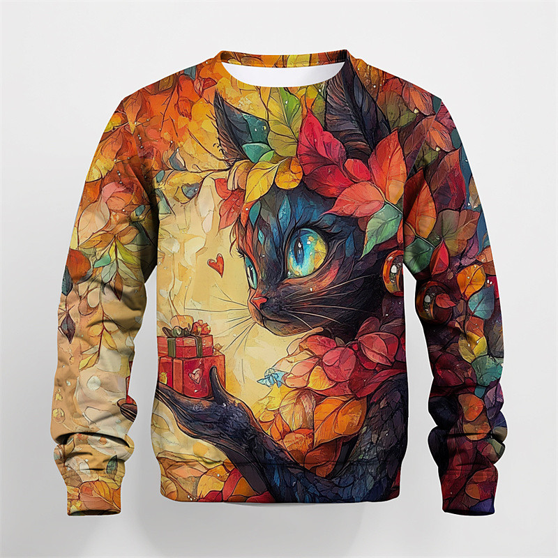 Boys 3D Graphic Cartoon Cat T shirt Tee Long Sleeve Spring Fall Fashion Basic Kids 4-12 Years Crew Neck Outdoor Casual Daily Regular Fit