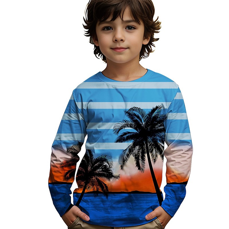 Boys' 3D Graphic Coconut Tree T shirt Tee Long Sleeve Spring Fall Fashion Basic Kids 4-12 Years Crew Neck Outdoor Casual Daily Regular Fit