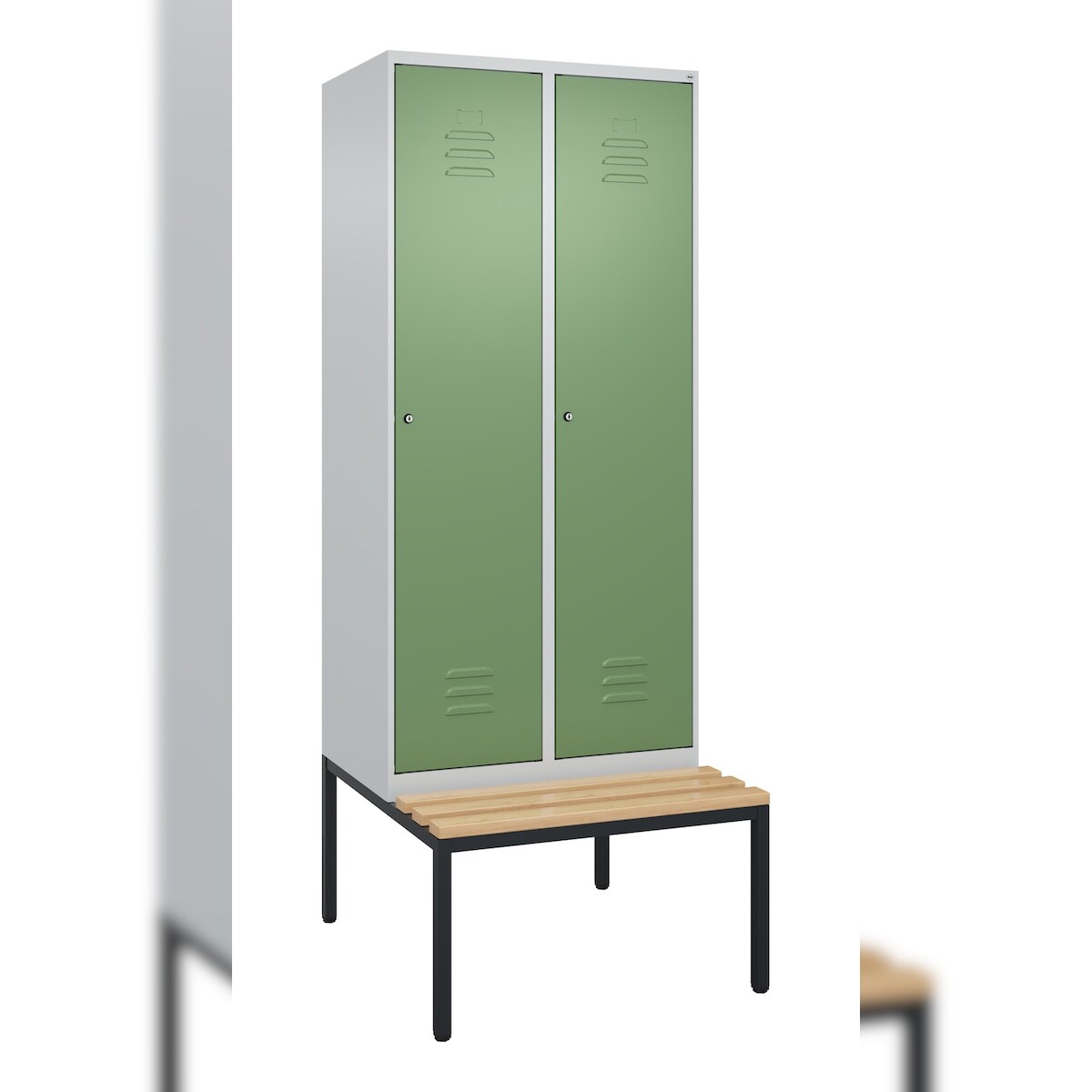 C+P Spind Classic PLUS, Buche untergebaute Sitzbank 2 Abteile, HxBxT 212x80x82cm, Zylinderschloss, Hellgrau/Resedagrün von PROREGAL