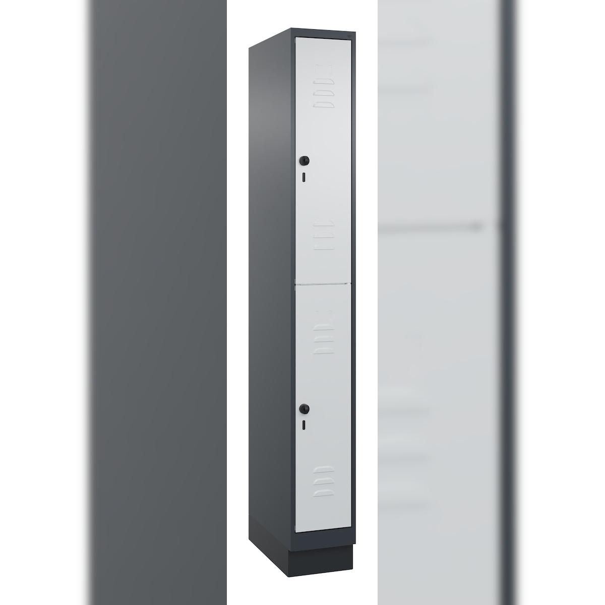 C+P Spind Classic PLUS, Sockel, 2 Abteile, HxBxT 195x25x50cm, Sicherheitsdrehriegel, Anthrazit/Hellgrau von PROREGAL