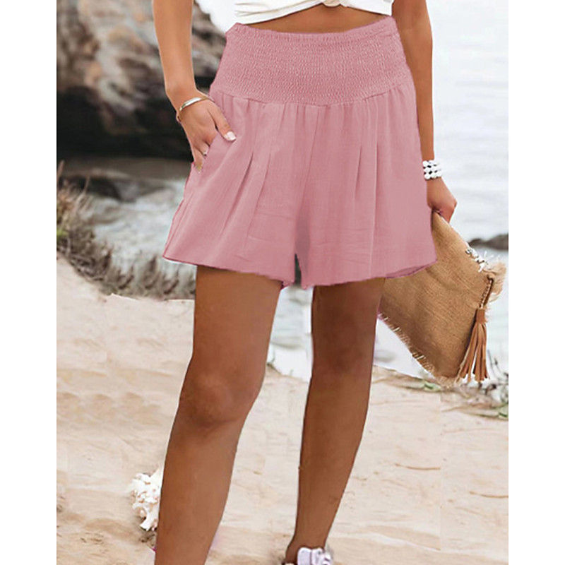 Women's Shorts Sunday Shorts Baggy Shorts Streetwear Casual Short High Waist Plain Elastic Waist Breathability Soft Micro-elastic Vacation Street Daily Wear Wine Black Pink Red Summer Regular Fit